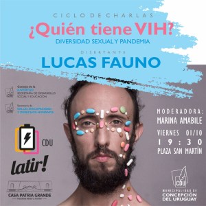 Se trata de una serie de charlas que se desarrollarán durante octubre, una cada fin de semana. La primera será este viernes bajo el título “¿Quién tiene VIH?: diversidad sexual y pandemias”. Será desde las 19.30 en Plaza San Martín, donde expondrá Lucas Fauno, quien es periodista, escritor y activista VIH+con la moderación de Marina Amabile, periodista y productora radial.
