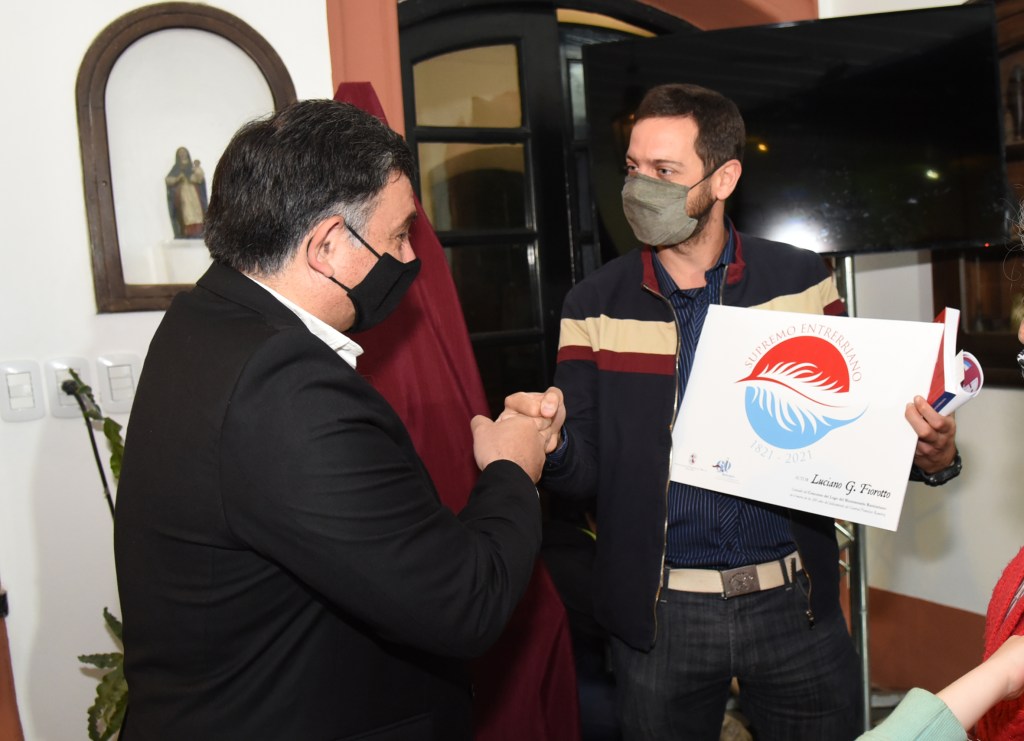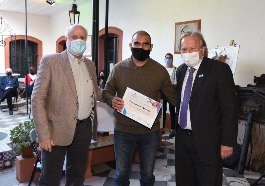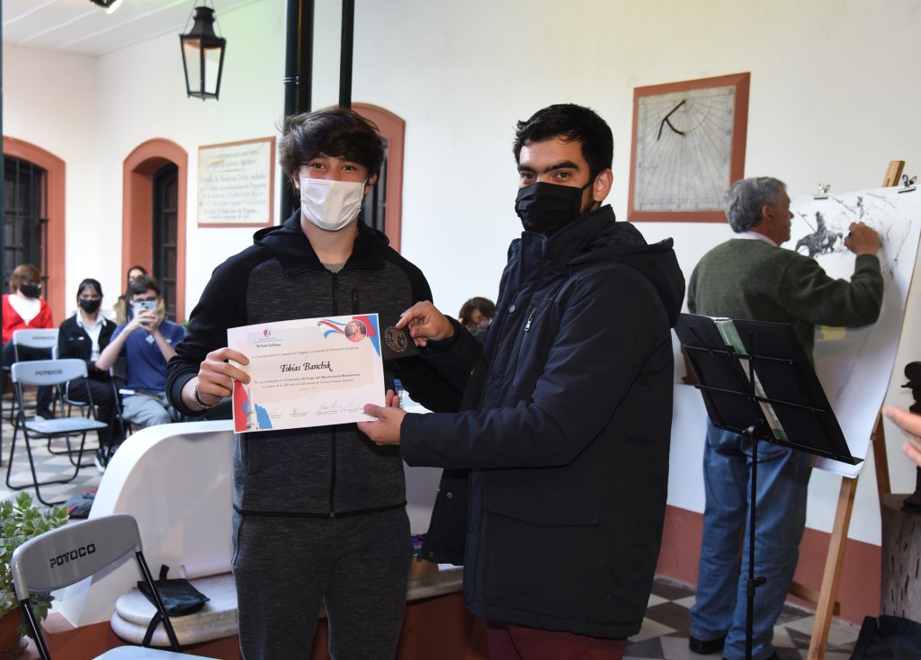 Seguidamente, se entregaron certificados a quienes participaron del concurso y menciones especiales para Luciana Bidal, Tobías Banchik, Verónica Giampieri, Franco Martínez y Abril Cergneux. El ganador fue Luciano Fiorotto, quien recibió $20 mil como premio y el libro “El Supremo”. Al explicar cómo llegó al diseño ganador, destacó que precisamente “Ramírez era muy celoso con la heráldica y la simbología”.