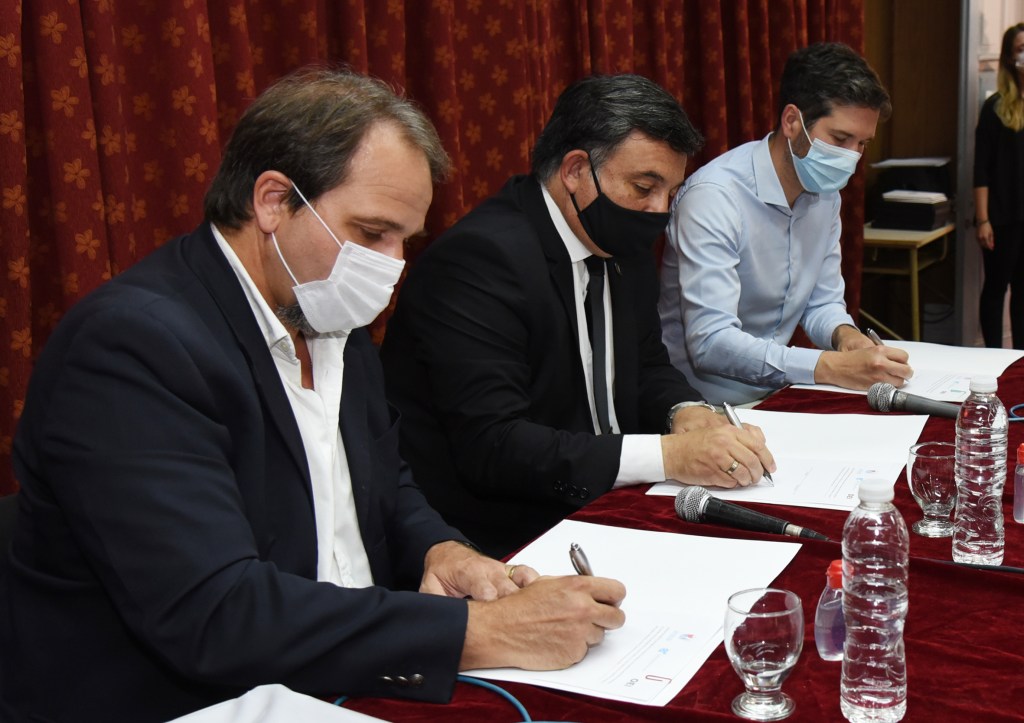 Para ello, este lunes firmaron el convenio el intendente, Martín Oliva; el director de OEI Argentina, Luis Scazzo; y el presidente del CGE, Martín Müller. Lo hicieron acompañados por el decano de la Facultad Regional de la UTN, Martín Herlax, dado que allí se firmó el documento.
