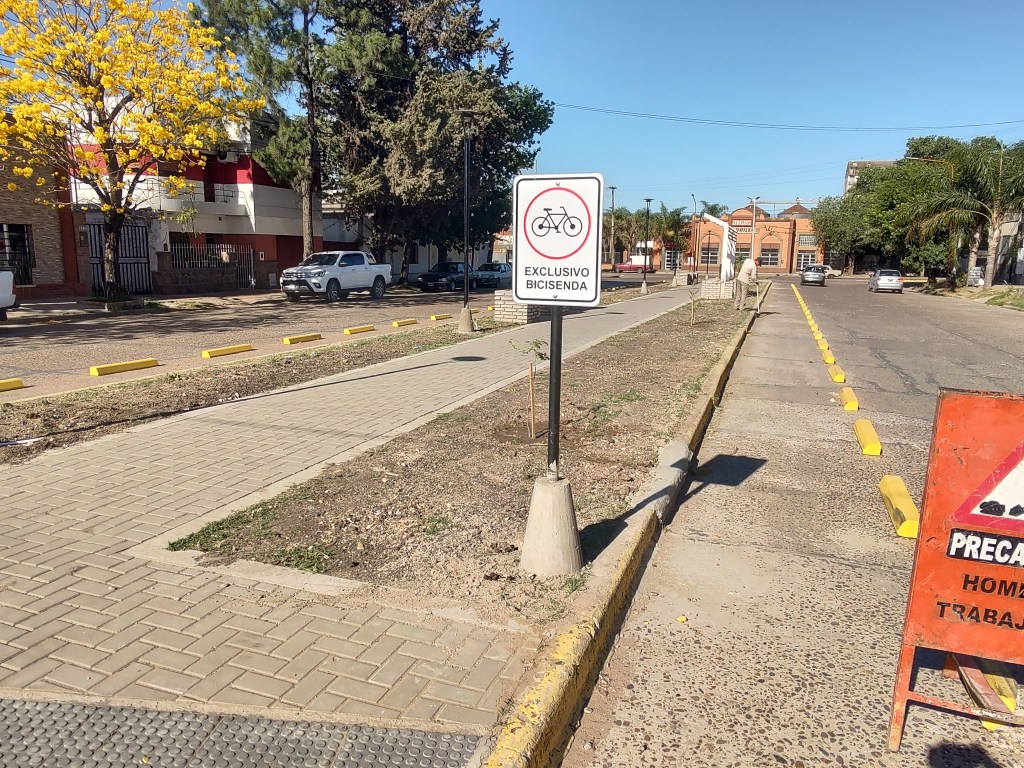 La empresa inició el arbolado en el lugar, y solo resta la iluminación y culminar con la instalación de los separadores de las bicisendas que irán sobre la calle, a ambos lados de las plazoletas centrales, con su respectiva cartelería.