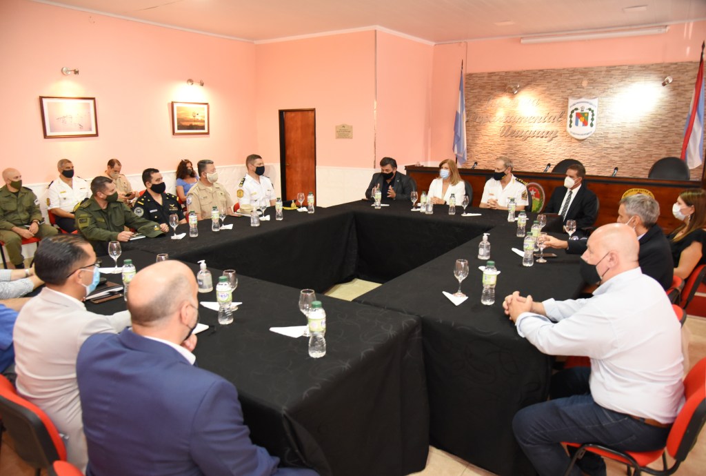 Del encuentro con la Ministra de Gobierno y Justicia de la Provincia Rosario Romero y el Jefe Provincial de la Policía de Entre Ríos Comisario General Gustavo Maslein participaron por el ejecutivo local el Presidente Municipal Martín Oliva, el Secretario de Coordinación General y Jefatura de Gabinete Yari Seyler, el Secretario de Gobierno Juan Martín Garay y el Director de Seguridad Ciudadana Gustavo Hanza.