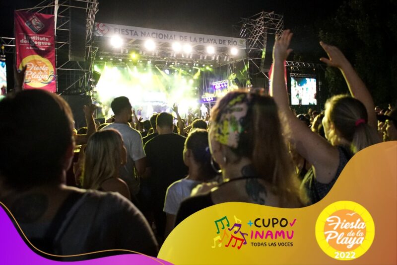 Las autoridades nacionales del organismo informaron a la Comisión Organizadora de la Fiesta Nacional de la Playa de Río, que luego de analizar la documentación presentada desde el evento, la fiesta cumple con las reglamentaciones que solicita la Ley para otorgar el “Sello de Reconocimiento”. “Les deseamos éxitos en este evento musical que aporta al cumplimiento del Cupo Femenino, siendo un desafío histórico que equilibra y amplía derechos expresivos y laborales de nuestras músicas mujeres y personas de identidad de género autopercibida” expresó en un documento, Delfina Llosa, integrante de INAMU y vinculada al tratamiento de la Unidad Ley de Cupo.