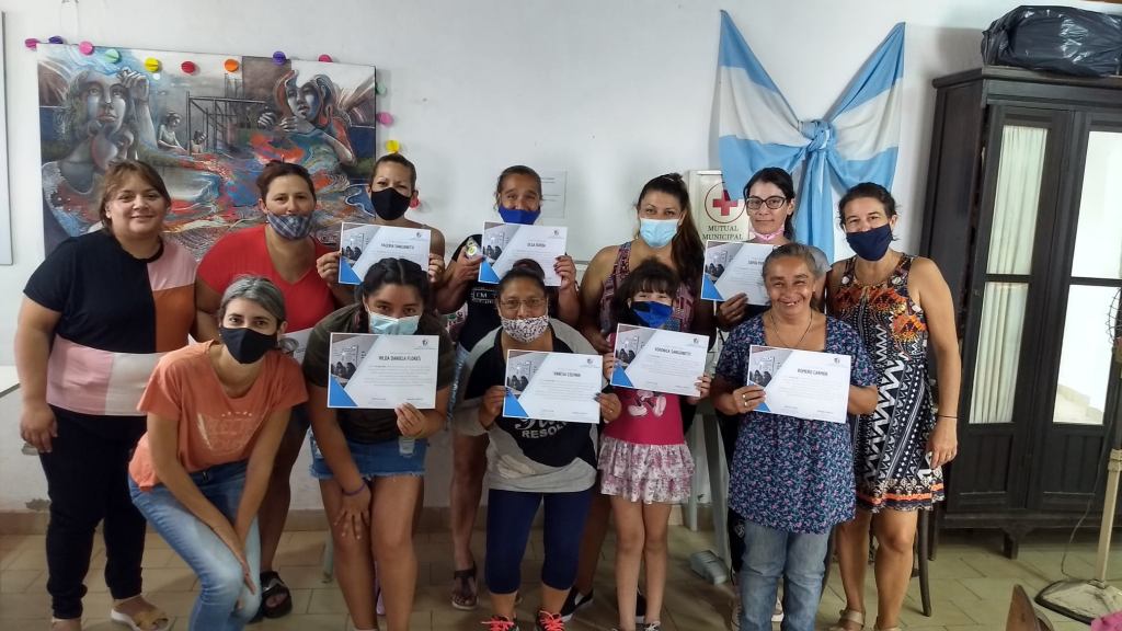 Finalizaron en diciembre las actividades realizadas como parte del proyecto financiado por el Plan Nacional de Protección Social, del Ministerio de Desarrollo Social de la Nación. El ciclo terminó con la entrega de certificados del taller de construcción en el SUM del barrio Los Palos, y del taller de corte y confección dictado en la Escuela Taller “Tadea Jordán”.