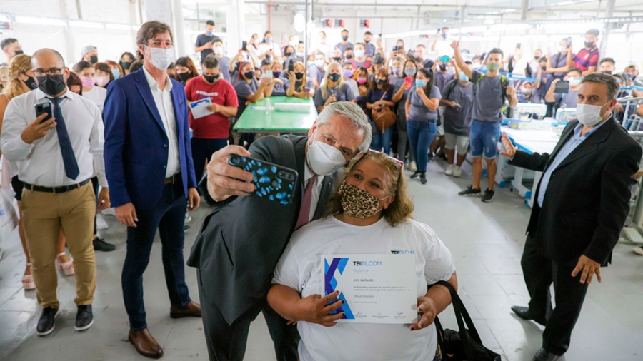 Tras entregar los primeros diplomas de «oficial costurero/a» a 18 empleados y empleadas luego de capacitarse durante enero -a través del programa de Inclusión Socioproductiva y Desarrollo Local «Potenciar Trabajo»-, Fernández resaltó que «son hombres y mujeres que están recibiendo la asistencia del Estado para emprender un futuro como trabajadores de una empresa que crece, y eso es algo que se debe cuidar mucho».