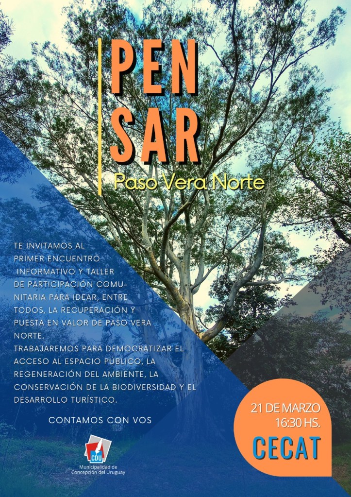 Como parte de la democratización del acceso al espacio público, de regeneración y conservación ambiental, y de actividad turística, la Municipalidad decidió recuperar meses atrás, la zona denominada Paso Vera Norte. Es por eso que se realizará el primero de los encuentros previstos para la elaboración de manera participativa y colectiva del proyecto. La invitación es para el próximo lunes 21 de marzo, de 17 a 20 en el CeCaT.
