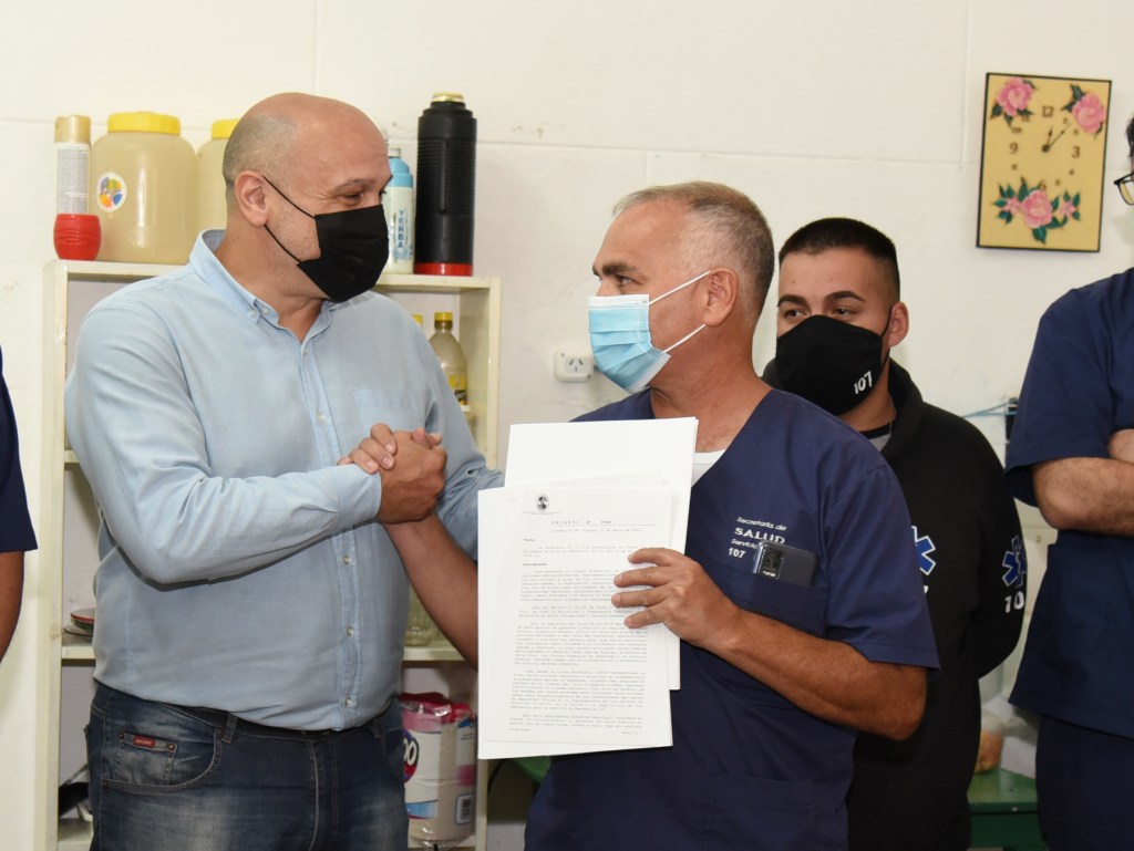 Se oficializó la jerarquización del servicio municipal de Emergencia 107. El Intendente visitó el área y entregó el Decreto de creación de la nueva División que desde ahora permitirá a su personal, contar con una carrera administrativa.