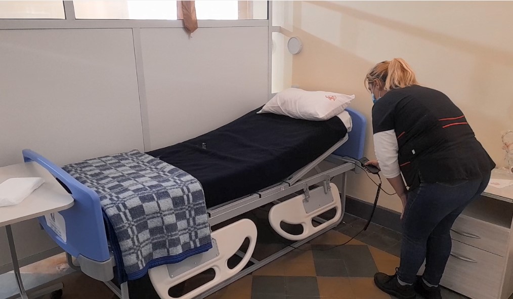 Marta Rodríguez, coordinadora de la Residencia, detalló que la Sala de Cuidados Adaptados “hoy cuenta con 12 nuevas camas ortopédicas, monocomando y electrónicas. También nuevos colchones y mesas de luz”, mobiliario adquirido para el confort de los adultos mayores que allí viven. Esta sala también cuenta con nueva cocina y mesa de enfermería de acero inoxidable.