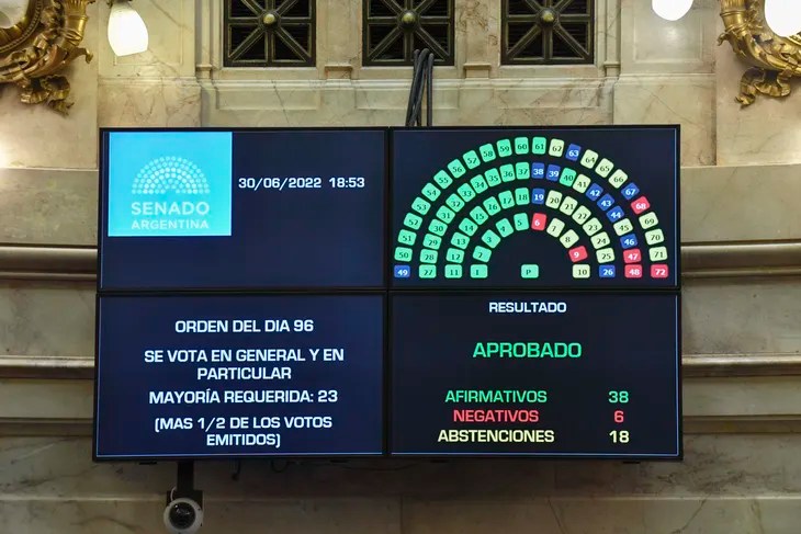 La propuesta cosechó 38 votos positivos del Frente de Todos y aliados, mientras que Juntos por el Cambio se dividió entre 6 votos negativos y 18 abstenciones.