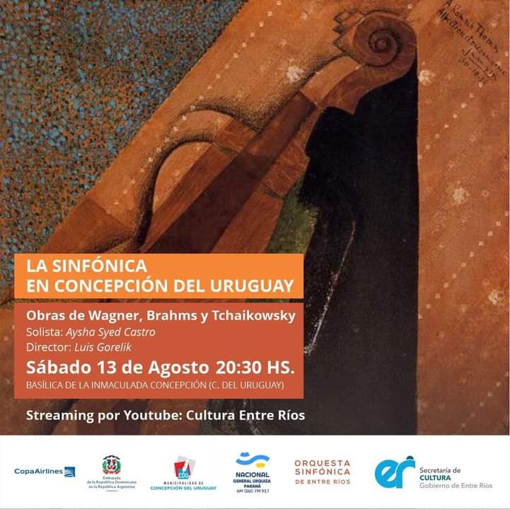 El sábado 13 de agosto a las 20:30, será el momento oportuno para escuchar la música de excelencia que aporta la Orquesta Sinfónica de la provincia de Entre Ríos. En esta oportunidad con la presencia de la solista internacional (violinista) Aisha Syed Castro y la dirección a cargo del Maestro Luis Gorelik, con la interpretación de obras de Wagner, Brahms y Tchaikowsky.