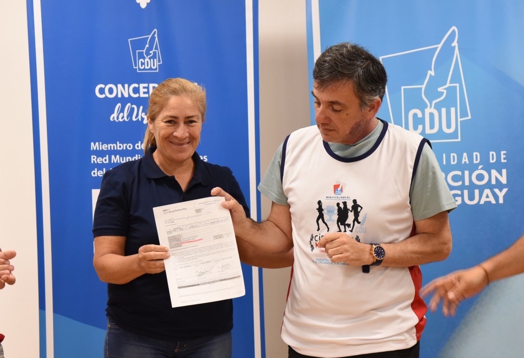 Además, recibió un aporte, el Comité Organizador del “Circuito de Maratones CDU”, que realizó su última fecha hace pocos días en el Centro de Educación Física N° 3 “Hugo Mario La Nasa”.