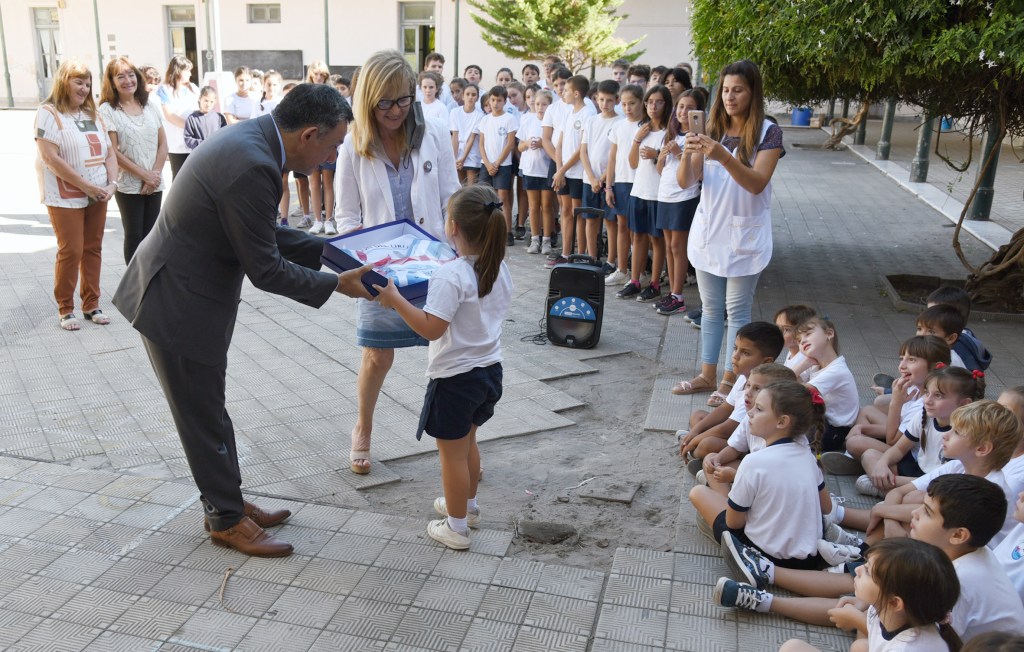 Por este motivo, este martes, se retomó la entrega de banderas, a las escuelas Viamonte, Escuela Normal en sus dos niveles y a la Escuela de Educación Técnica “Miguel Ángel Marsiglia” y “así seguiremos durante todo marzo y mediados de abril en el que entregaremos una primera parte de 46 banderas de ceremonias y luego, en mayo continuaremos con la entrega de 30 banderas más” explicó el propio Presidente Municipal.