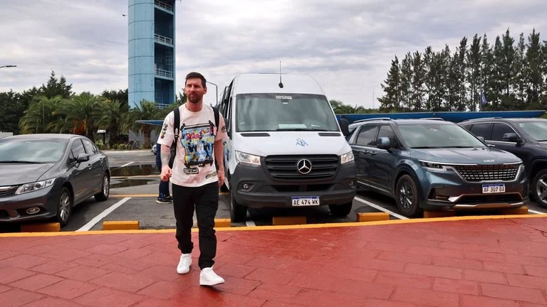 Messi llegó este lunes a la mañana a Argentina junto a su esposa Antonela Roccuzzo y sus hijos Ciro, Thiago y Mateo, para sumarse a la Selección de cara a los festejos por el título en el Mundial de Qatar. A diferencia de otras ocasiones, el rosarino viajó sólo con su familia y ningún integrante de la convocatoria compartió avión con él. Conociendo la emoción que podría generar su figura, la información del día de su arribo al país se mantuvo en hermetismo y así se consiguió que pueda transitar con cierta normalidad los pocos kilómetros que separan al aeropuerto de Ezeiza del predio de AFA.