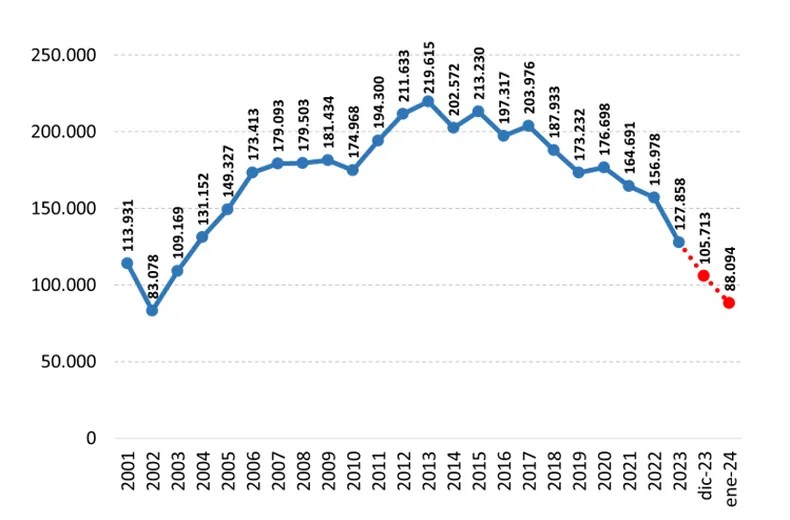 «Estos datos muestran un persistente y profundo deterioro en el poder de compra de las jubilaciones. El monto en diciembre de 2023 es inferior al promedio de todo 2023 y se ubica cerca del menor valor que tuvo en el siglo, que fue en 2002. Dado que las jubilaciones se ajustarán recién en marzo de 2024, suponiendo que la inflación en enero sea aproximadamente del 20%, el valor real de las jubilaciones en enero 2024 será el equivalente a $88.094 a precios de diciembre 2023. En febrero seguramente se ubicará por debajo del valor real que tenían en 2002. Es decir, en febrero, las jubilaciones tendrán el menor valor real del siglo XXI», explicó Idesa.