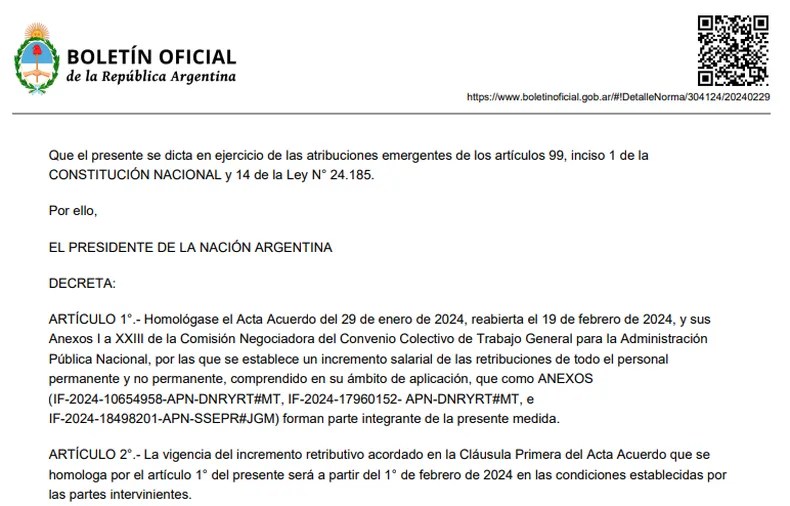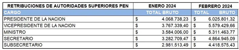 La denuncia surgió de la diputada de Unión por la Patria Victoria Tolosa Paz, que mostró en Twitter un decreto oficial firmado el 29 de febrero por Milei, el jefe de Gabinete, Nicolás Posse, y la ministra de Capital Humano, Sandra Pettovello. Con esa decisión, sostiene el argumento de la opositora, el sueldo del jefe de Estado pasó a ser de $6.025.801, casi el triple del monto al que ascienden las dietas legislativas con el aumento.