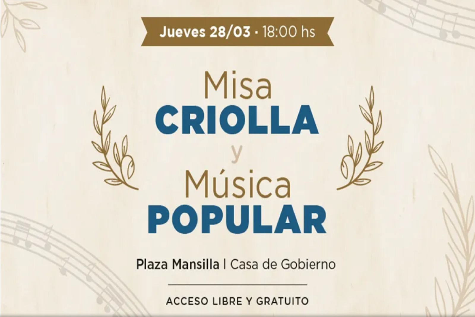 En Paraná y con motivo de la festividad cristiana, se realizará el evento “Misa Criolla y Música Popular” que tendrá lugar el jueves 28 de marzo, desde las 18, en Plaza Mansilla, frente a Casa de Gobierno.