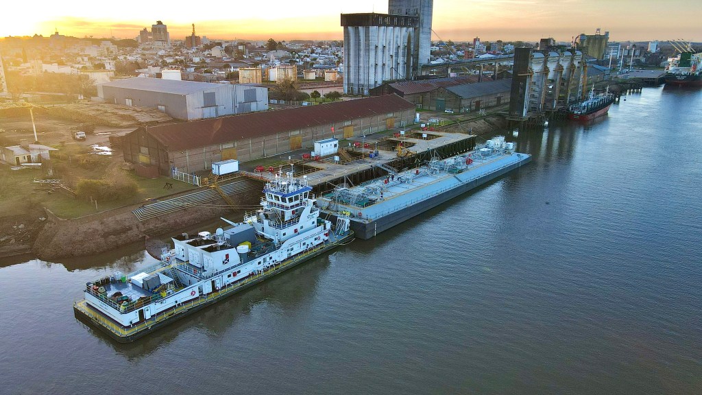 Al finalizar la actual operación, el buque se dirigirá al puerto de Ibicuy, donde completará sus bodegas con unas 14.000 toneladas adicionales de la misma carga.