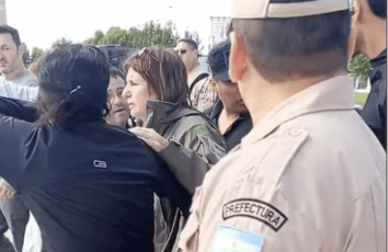 La ministra de escapó rodeada por efectivos de la Policía Federal y Prefectura en medio del griterío de los vecinos. Petri se mantuvo a prudente distancia, pero también recibió insultos.