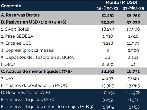 Epstein explicó que las reservas brutas son las reservas totales que están en poder del Banco Central. Esto quiere decir tanto el dinero que es del Central, como el swap de monedas con China, o los dólares de los ahorristas que están en los bancos privados, pero que se atesoran en el Banco Central. «No quiere decir que sean del Central, sino que están en poder del Central», dijo.